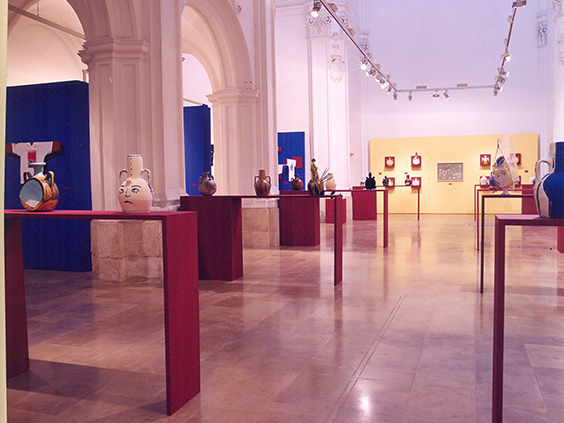 En esta exposición se ha privilegiado la creatividad y el sentido del humor fuera de corsés académicos. Hay botijos que se podrían encontrar en los jardines de un vetusto conde, o que se han deshecho debido a las altas temperaturas, hay botijos que pudieron ser encontrados hechos pedazos por un arqueólogo. Abanicos tan frágiles que han perdido su utilidad o que han recuperado la antigua tradición del abanico pintado a mano, y camisetas que recogen imágenes y textos que bien podrían verse entre el vestuario de nuestros veraneantes. Como verán todos los creadores han partido del mismo tipo de objeto y sin embargo cada una de las obras resultantes es diferente a otra. Y es que imaginación no nos falta, esto es evidente, y tampoco el sano sentido del humor necesario para enfrentarnos a ‘esta calor’ que se nos viene encima.