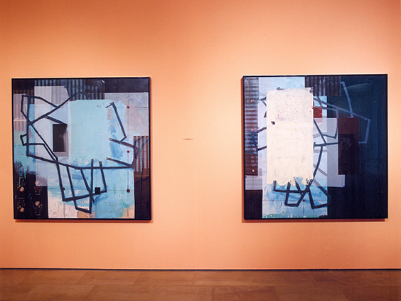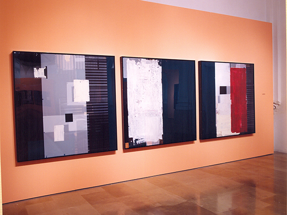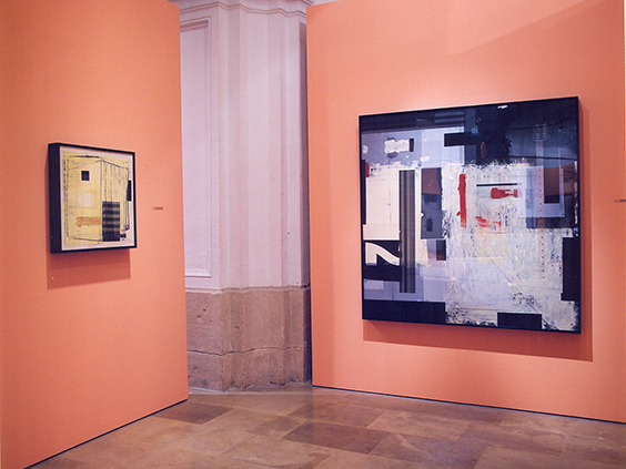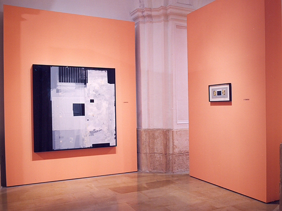 Ha colaborado con nosotros últimamente en el diseño de escenografías para nuestras producciones operísticas. Existe una relación muy directa entre las escenografías que Ángel realizó para nosotros y la obra que hoy aquí presentamos. Relación en lo formal ya que el espacio es invadido por un bosque de masas que permiten el tránsito de los elementos. Ese mundo de ocultación, de huidas, de encuentros y de apariciones, donde lo espectral se torna físico y viceversa, servían también de espacio en su vertiente tridimensional para los devaneos de los personajes operísticos. Quedan aquí plasmados como ventanas que invitan al espectador a invadir y recorrer libremente los espacios.