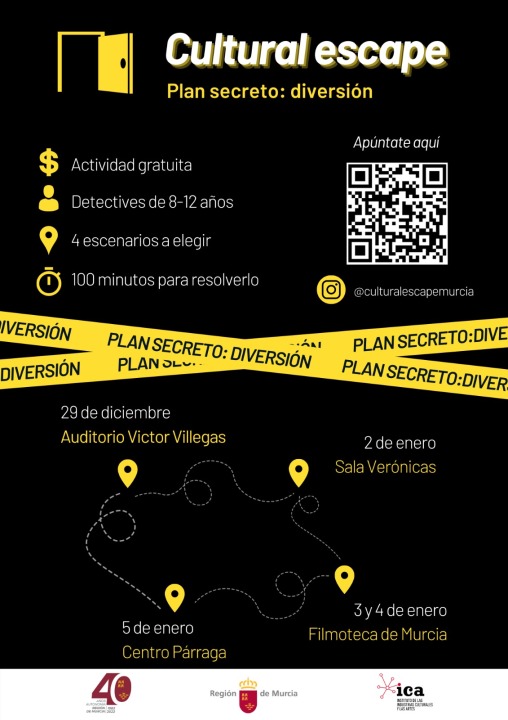 El Instituto de las Industrias Culturales y las Artes (ICA) ha organizado durante estas vacaciones de Navidad, dentro de su programación ICA Educa, cuatro ‘escape room’ para los más pequeños en el Auditorio Regional Víctor Villegas, en la Sala Verónicas, en la Filmoteca Regional Francisco Rabal y en el Centro Párraga.