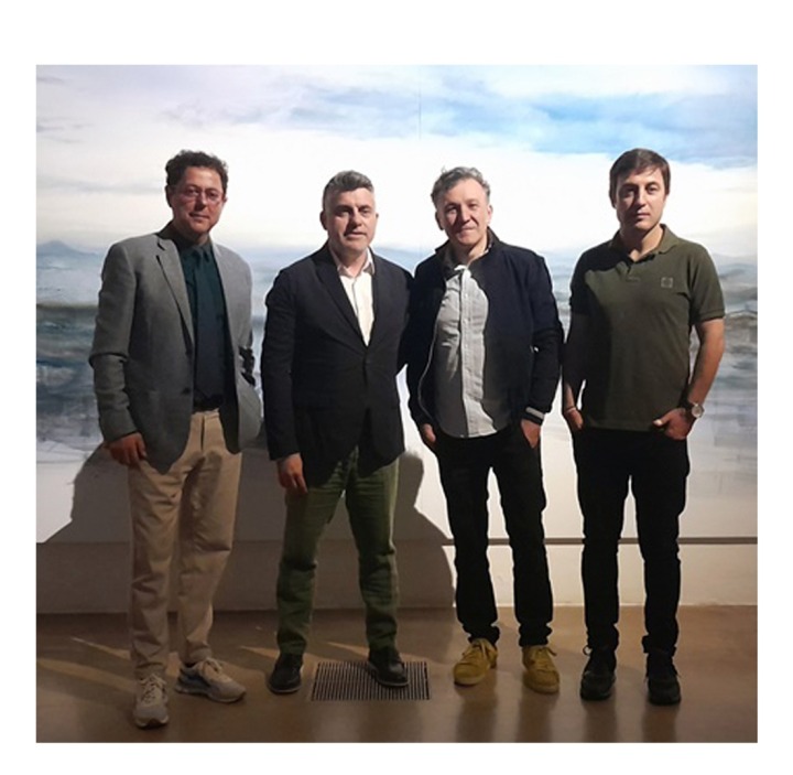 El secretario general de la Consejería de Presidencia, Turismo, Cultura, Juventud, Deportes y Portavocía, Juan Antonio Lorca, y el director general del Instituto de las Industrias Culturales y las Artes (ICA), Manuel Cebrián, visitaron hoy el montaje de la muestra acompañados por el creador.