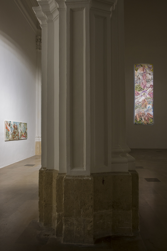 Los nuevos trabajos de Luis J. Fernández funcionan como collages en los que fragmentos de realidades heterogéneas –arquitecturas, formas geométricas, naturaleza, calaveras, motivos de la sociedad de consumo, palabras- conviven en un mismo espacio de representación. La suma de todos ellos no construye ninguna historia o relato, y sumen al espectador en un instante de incertidumbre. Cada fragmento de realidad funciona como resto o testimonio de una realidad que fue pero ya no es; están descontextualizados, han perdido su sentido original y, en su conjunto, ofrecen la imagen de ruina de una realidad o estado de valores que se ha ido desmoronando poco a poco. Estas obras últimas de Luis Fernández se articulan como auténticas fantasmagorías en las que la impresión de realidad, de vida, parece haberse esfumado para siempre. El espectador es libre de conectar los diversos motivos representados entre sí, generando juegos y sensaciones absolutamente propios y personales, paseando su mirada entre ese lugar de ruinas sin que exista un único recorrido posible que determine su deambular. Las pinturas de Luis Fernández no tienen una historia predeterminada; de ahí que sea la imaginación del espectador la que desempeñe un papel importante a la hora de reconstruir el pasado y proyectar el futuro de cada una de las realidades representadas.