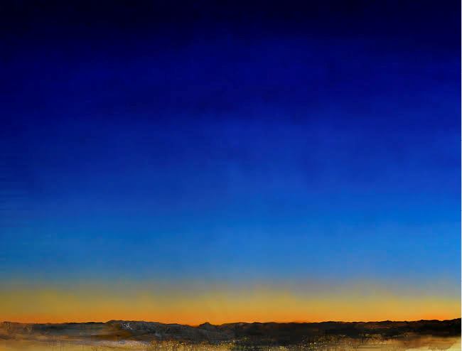 Uno de los cuestionamientos más interesantes de la pintura abstracta es la búsqueda de su frontera lingüística, investigación que, a fuerza de indagar en un elemento fundamental de su constitución como el color, desemboca en la luz como límite ontológico. Para un pintor como De Maya que toma como punto de partida la realidad que vemos, la representación de los matices de un cielo cambiante supone un ejercicio de superación de la figuración, explorar una dimensión desconocida. Este componente visible de nuestra existencia vinculado a lo celestial conforma un concepto pictórico tan difícil de asir como complejo de describir, pues su significado atañe a los principios que estructuran la mirada y el modo en el que percibimos el entorno que observamos. Además de esta línea de trabajo en torno a los cielos murcianos, se adentra también en otras cuestiones profundas vinculadas a la cosmovisión de la Región como pueden ser el conjunto de la Santa Cena de Salzillo, el cordero segureño, el vino autóctono, los atardeceres de La Manga o el característico color rojizo de la comarca del Noreste, entre otros asuntos de carácter vernáculo, un políptico de lectura abierta para que el visitante saque sus propias conclusiones.